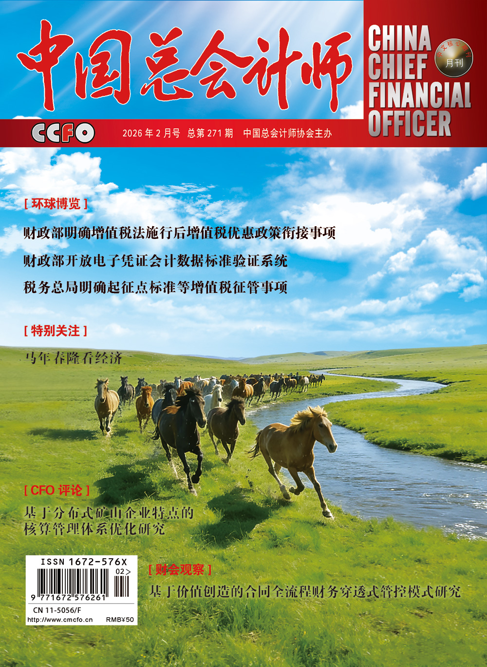 - 《中国总会计师》杂志是中央级大型财经类月刊,正度大16开,全部采用彩色铜版纸,国内外公开发行。本杂志定位于“三高”:高权威、高品位、高水准:着眼于“三新”:选题新、内容新、版面新。紧贴时代,关注焦点,及时传达中央财政政策,深度报道国内外财政、金融、证券界重大事件,生动介绍时代前沿人物,传播企业先进管理经验,解读财富真谛,融学术性、知识性、新闻性于... [详细内容]